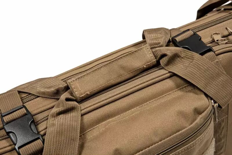 Points forts:- Nylon résistant- Lanières type sac à dos- Lanière pour transport bandoulière- Emplacement velcro avec patch inclus- 4 compartiments pour rangement d'accessoires- Grand compartiment pour le rangement de la réplique avec extension déployable en interne- Deuxième compartiment intermédiaire pour accessoires ou réplique type SMG- Version Tan