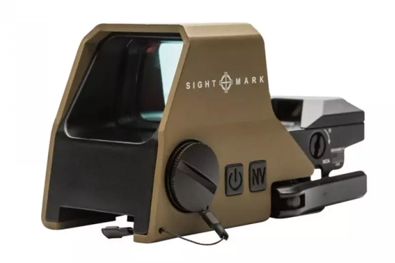 This quality Ultra Shot A-SPEC Tan Sightmark holographic-type red dot sight features a red reticle with digital adjustment to multiple intensity levels and a night vision mode. It is an evolution of the Ultra Shot Plus model featuring a reinforced CNC 6061 T6 aluminum housing as well as optimized durability offering up to 2,000 hours of use depending on mode.