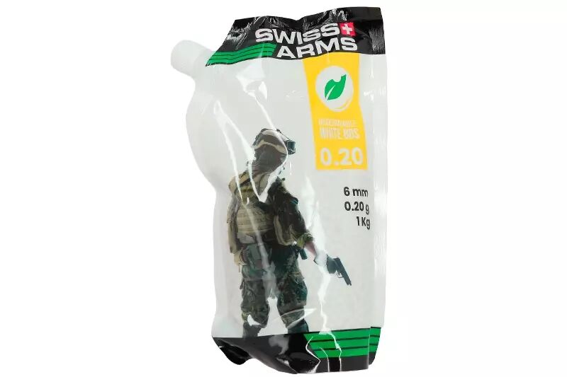 Paquete de 5000 balines orgánicos SWISS ARMS de 0,20 gramos, ideales para alimentar sus pistolas de airsoft y réplicas largas.