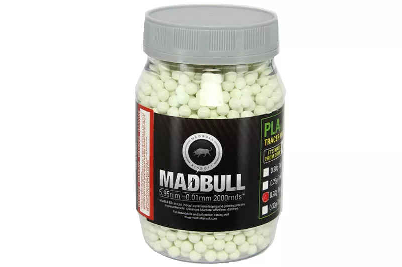 1 x Bote de 2000 balas trazadoras orgánicas Madbull verdes de 0,28 g