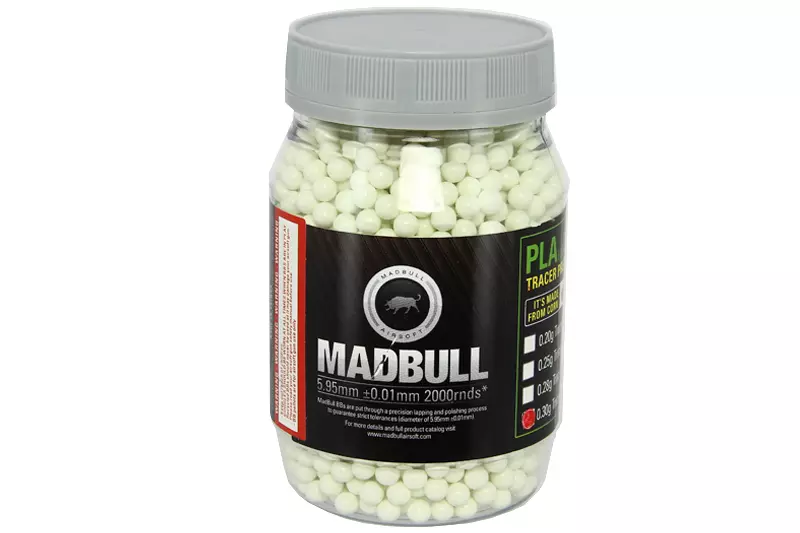 1 x Bote de 2000 balas trazadoras orgánicas Madbull verdes de 0,30 g