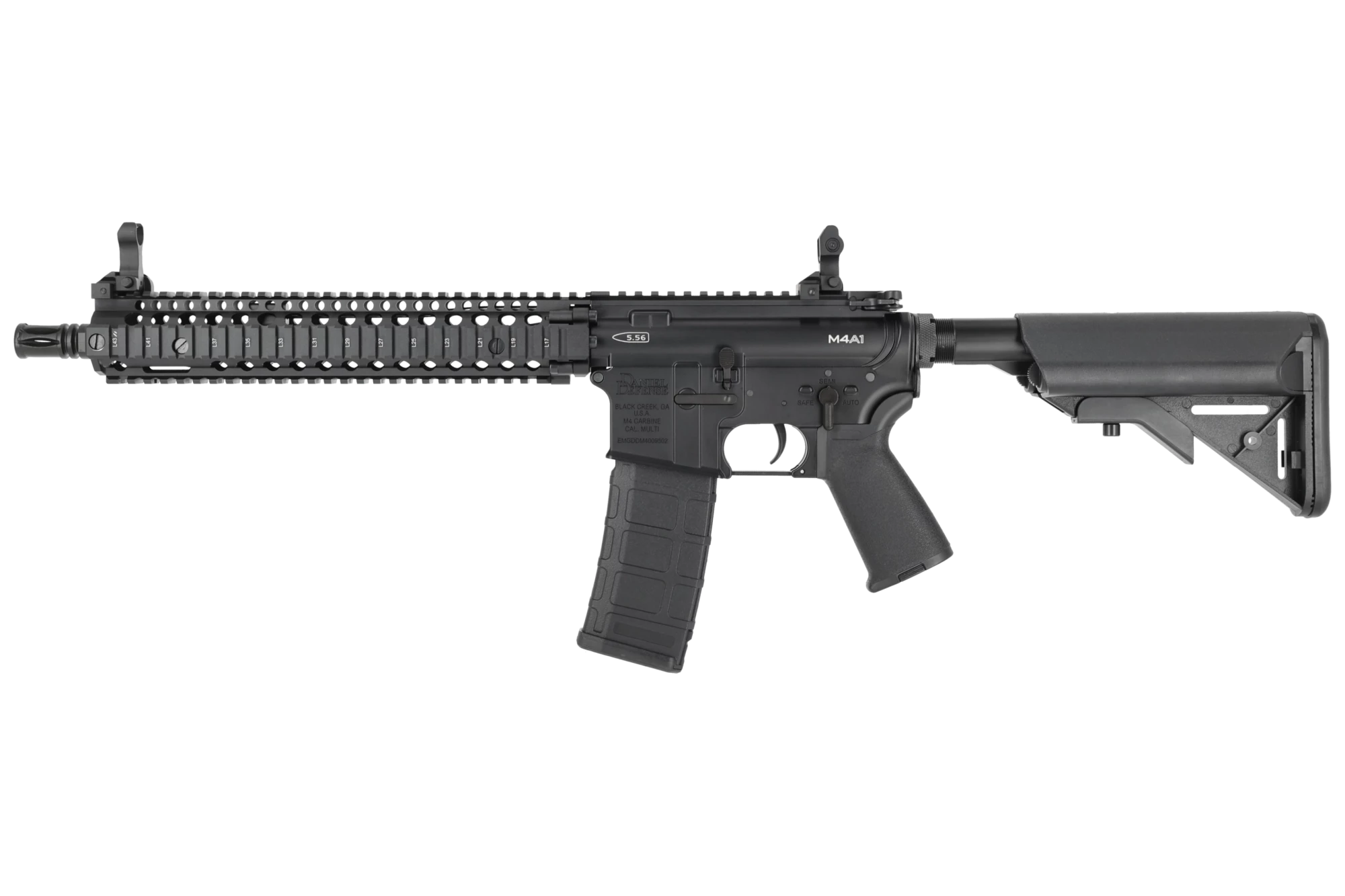 El M4A1 Block II 12" Daniel Defense CYMA / EMG está dirigido a jugadores que buscan una plataforma AR15 con licencia visualmente fiel. Su carcasa de aleación metálica con marcas y grabados Daniel Defense y su acabado en negro mate refuerzan su sobriedad y cuidado diseño.