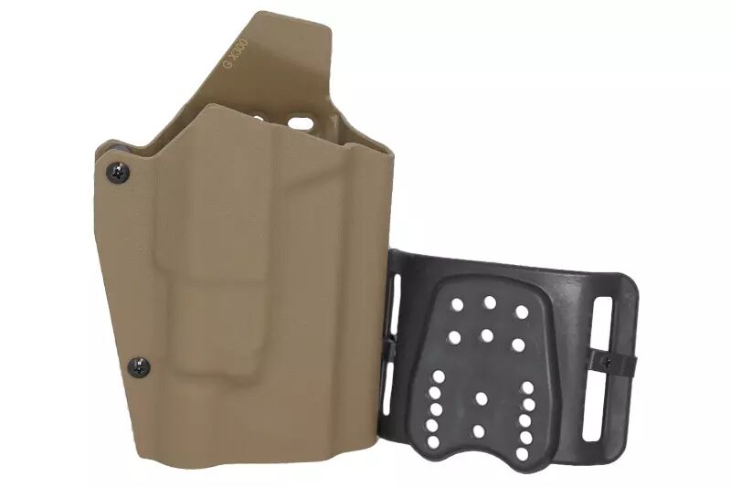 1 x Funda ligera tipo Kydex para Glock + linterna WOSPORT X-300 bronceada