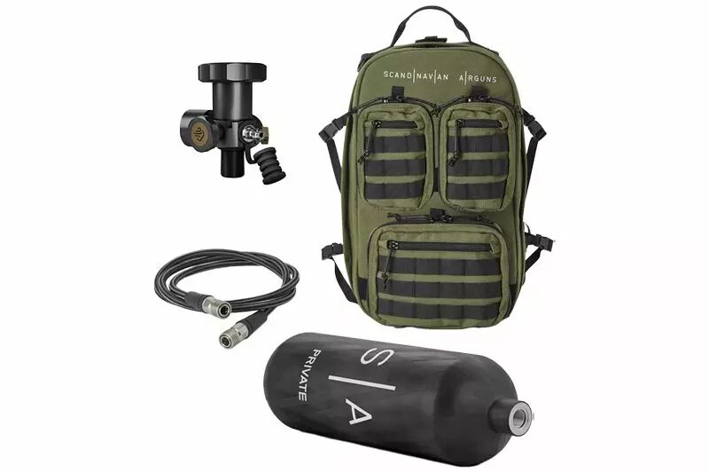 Scandinavian Arms es una empresa sueca con sede en Estocolmo fundada en 2018. Especializada inicialmente en el mundo de las armas de aire comprimido, se trata de un pack completo compuesto por una mochila de calidad y una botella de aire de carbono de 2 litros y 4500 PSI / 310 Bars. También incluye una manguera QD y un preajuste de 4500 PSI.