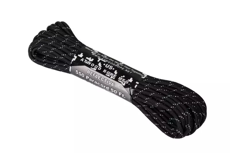 1 x Paracorde 550 15m reflectante Negro Atwood Cuerda MFG