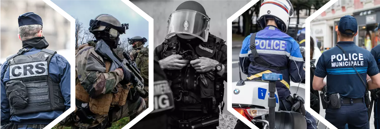 Servicios de policía, gendarmería, fuerzas militares, servicios de policía municipal, empresas de I+D o escuelas de formación, podemos ofrecerle equipos adaptados a sus necesidades, como formación, entrenamiento especializado, manejo, ropa y accesorios para el campo.