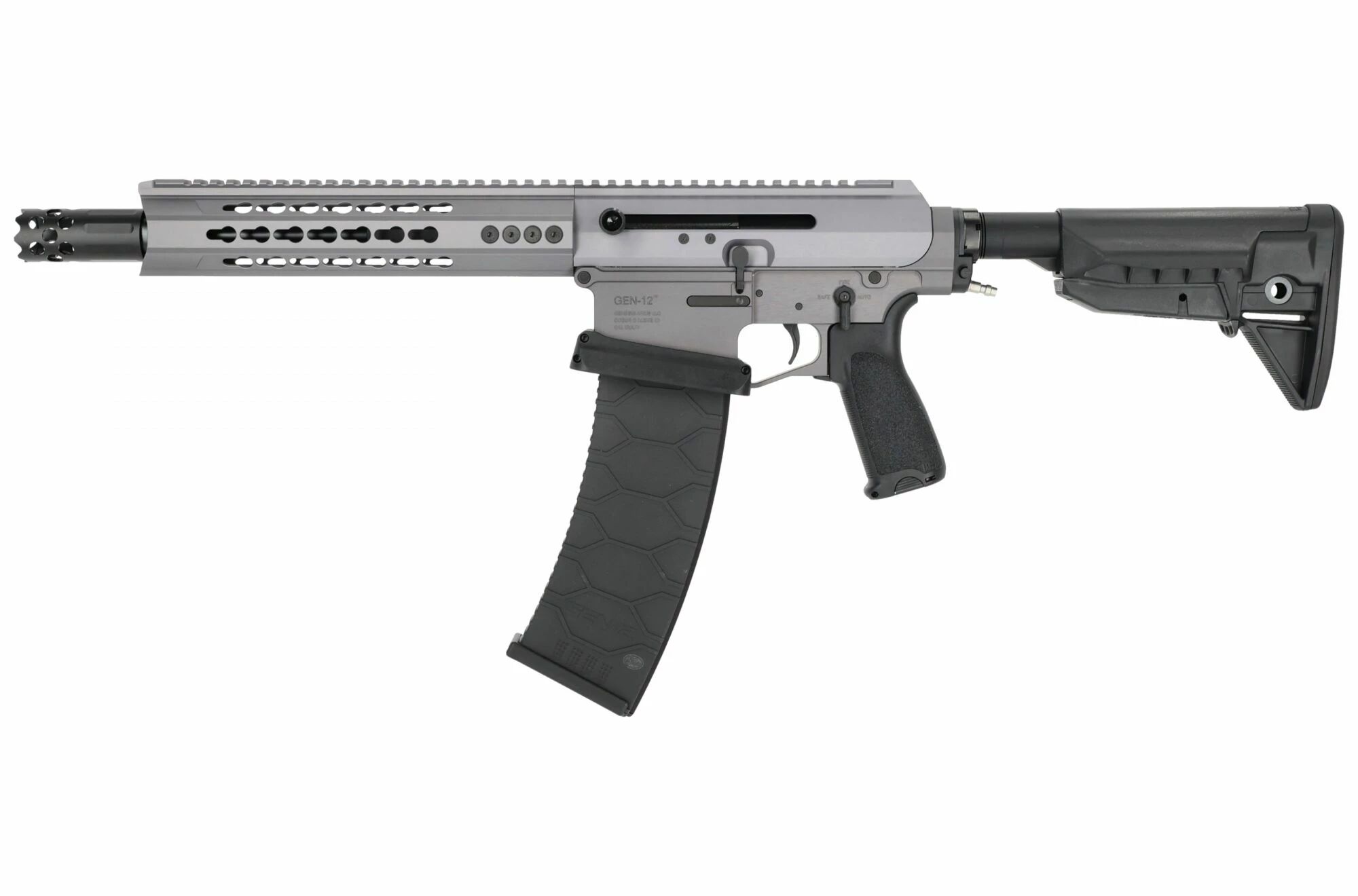 La empresa americana Wolverine airsoft se ha asociado con EMG (Evike Manufacturing Group) para ofrecer una réplica a escala 1:1 HPA MTW airsoft de la escopeta automática Dracarys Gen-12 en la versión Disruptive Grey bajo licencia oficial con marcaje TTI / Genesis Arms.