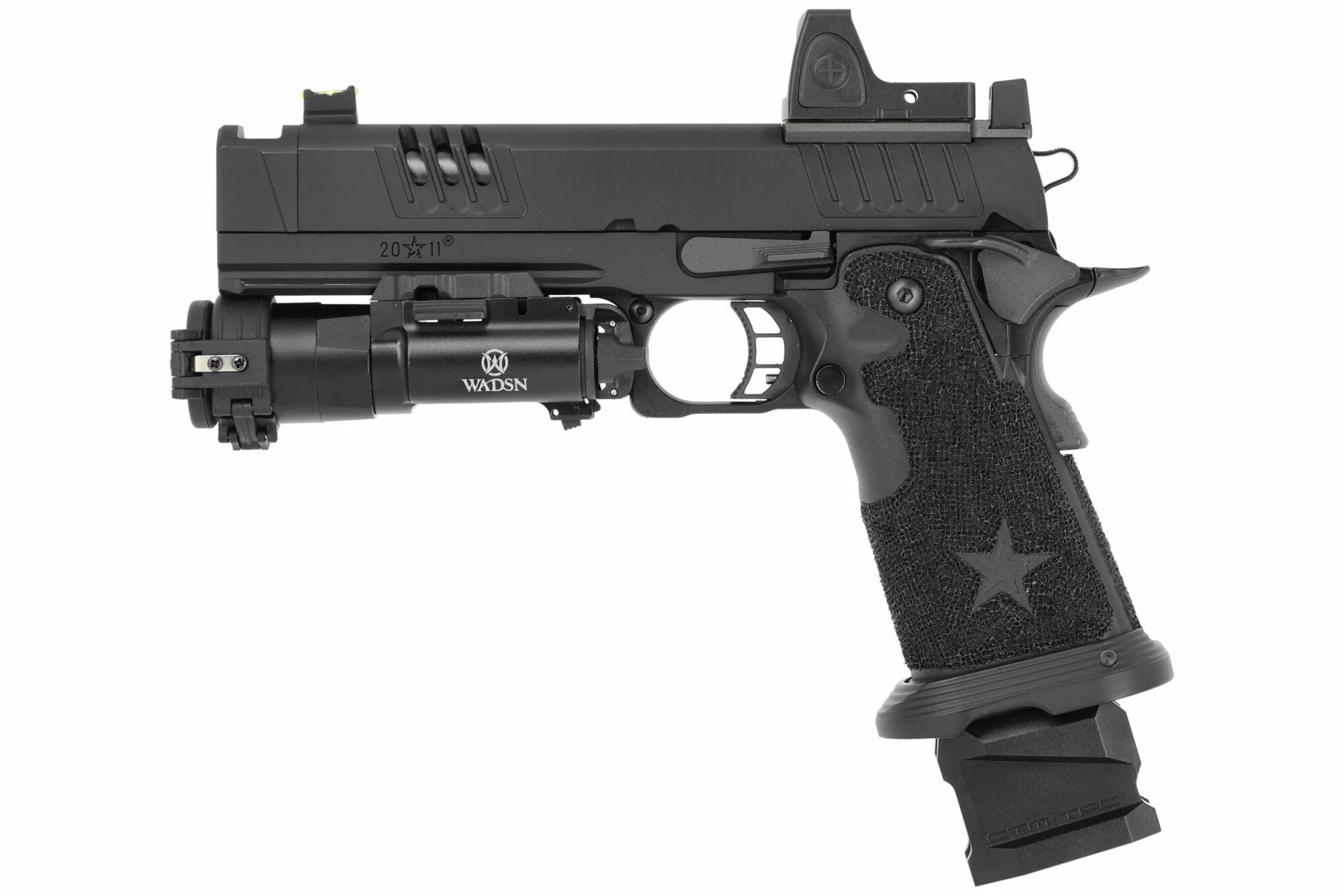 "Esta réplica personalizada Staccato XC ofrece un agarre seguro y una adquisición rápida incluso en la oscuridad. Su difusor me permite deslumbrar eficazmente a mis adversarios y me da una ventaja significativa. "