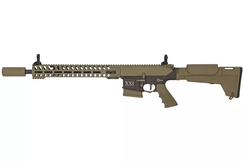 SECUTOR ofrece una réplica de airsoft AEG tipo DMR SR25 RAPAX XXI M.8 de SECUTOR con mosfet integrado y cola de disparo electrónico programable.